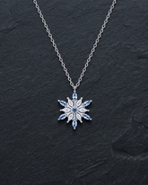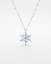 | Design | Snowflake pendant with blue and clear stone accents |